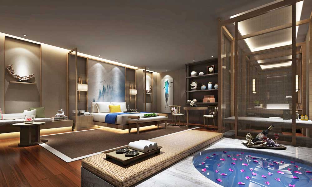 酒店装修坚持以人为本的原则,不仅要体现超前性和艺术性,还要布局合理、经济实用。成功的装修不仅能消除客人的疲倦感和焦躁感,还能带来家的温馨,从而吸引更多的顾客。