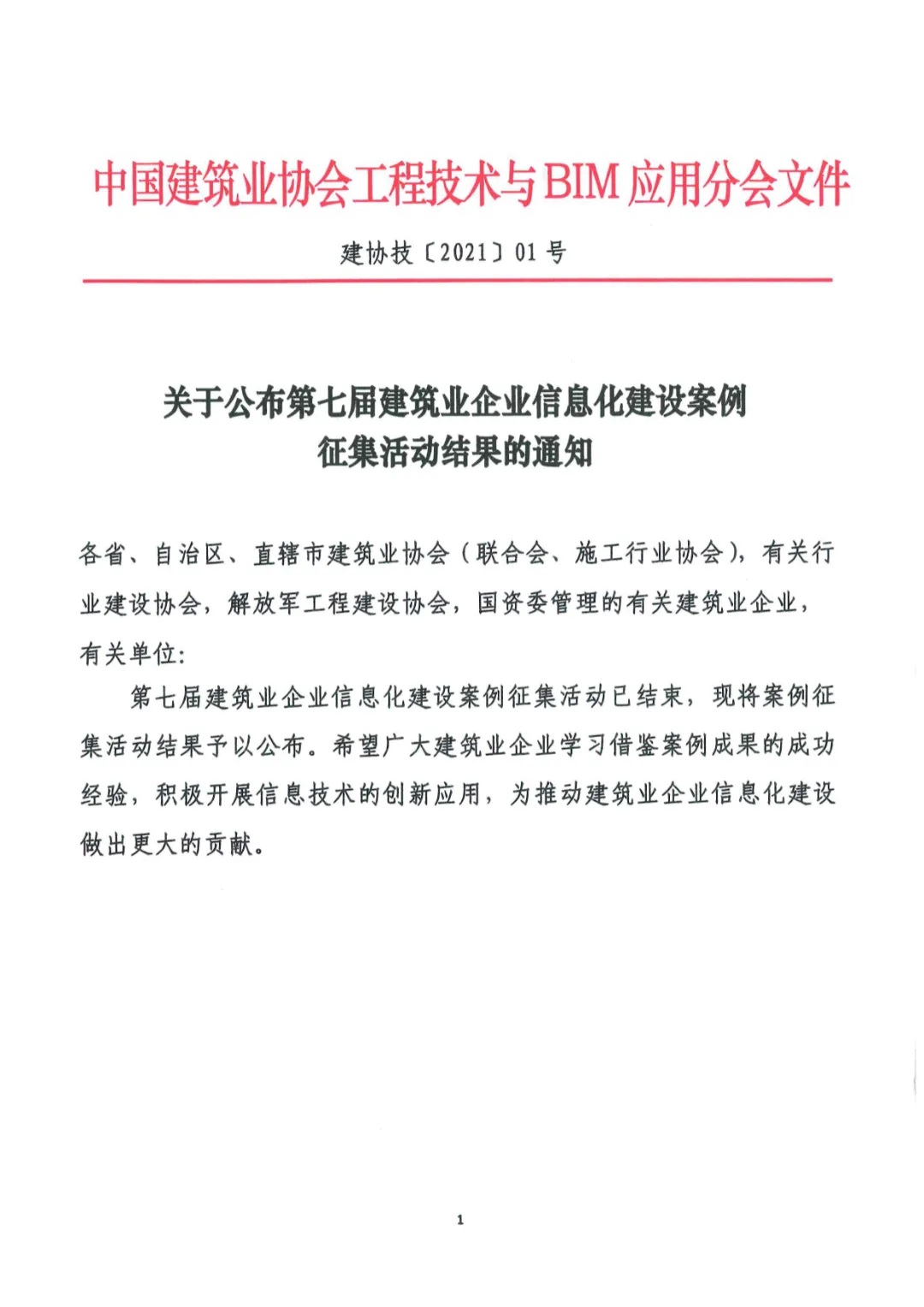 此次案例征集活动由中国建筑业协会主办,旨在推动建筑业企业数字化转型,促进信息化建设经验交流共享,引导建筑业企业科学、合理、有效地开展信息化建设,全国共有上百个建筑企业申报,经过层层评选,公司申报的案例最终脱颖而出。